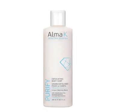 Alma K Exfoliating Body Soap 250 ml med mineraler fra Det Døde Hav. Effektiv,skånsom pleje til alle hudtyper vegansk og parfumefri.