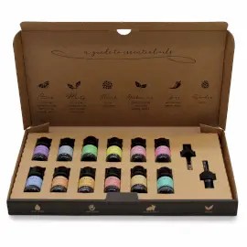 Dette Aromaterapi efterårssæt indeholder en bred vifte af æteriske olier, der giver duftnoter, der passer perfekt til sæsonen.
