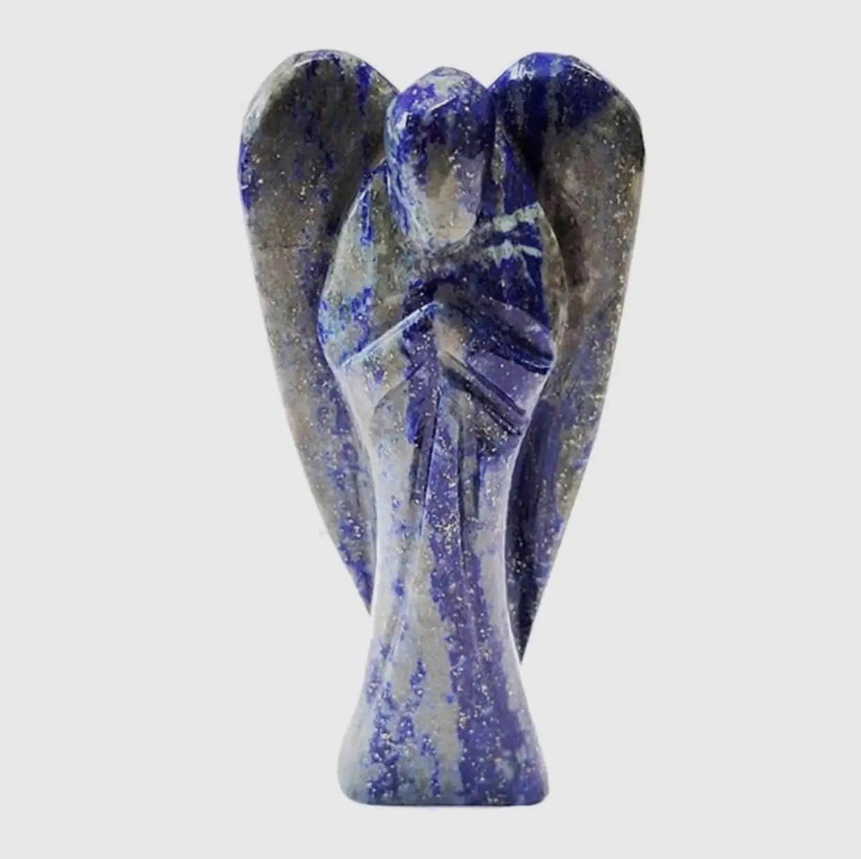 En engel lavet af lapis lazuli, der måler 10 cm, er et symbol på styrke, visdom og guddommelig forbindelse.