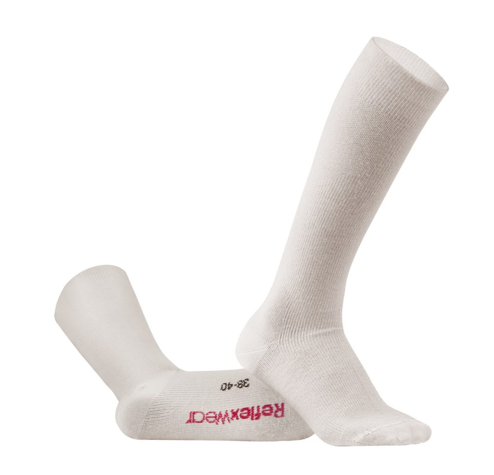 Disse kompression- og rejsestrømper strømper er strikket med den samme tynde, ultra bløde Celliant tråd, der bruges i Diabetes & Komfortstrømperne fra ReflexWear®. Dette suppleres med en kompression på 18-21 mmH