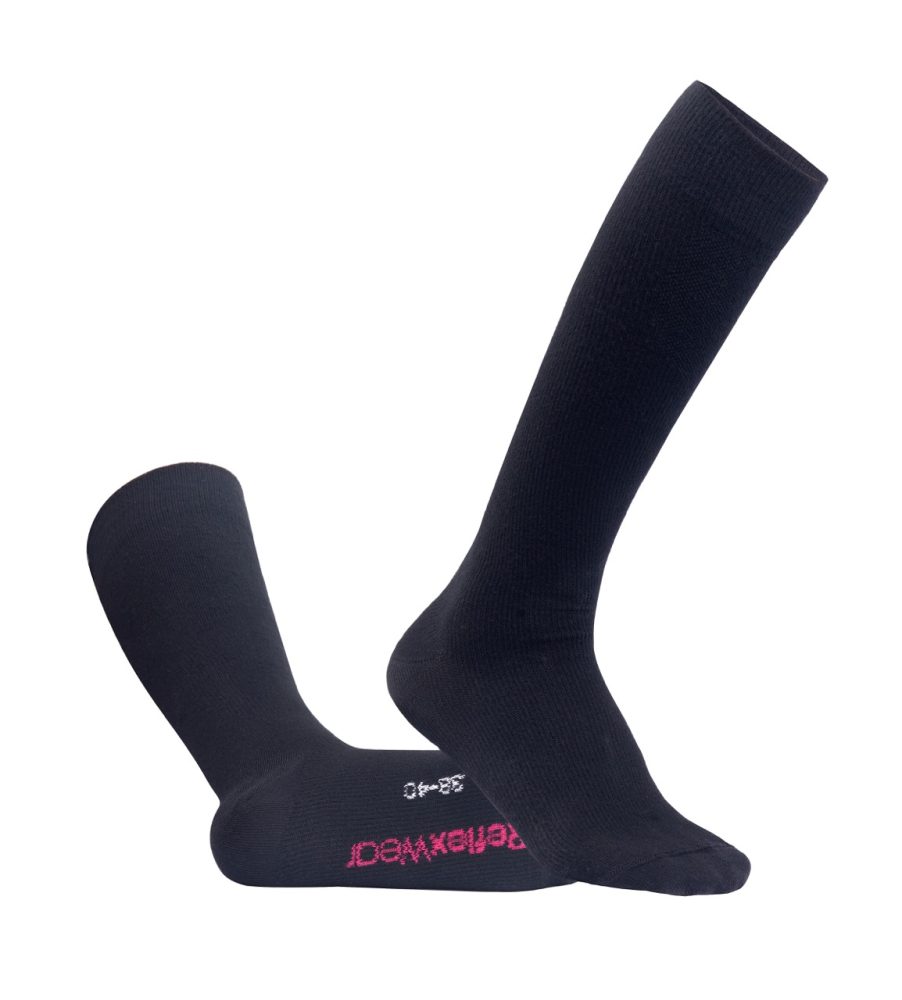Disse kompression- og rejsestrømper strømper er strikket med den samme tynde, ultra bløde Celliant tråd, der bruges i Diabetes & Komfortstrømperne fra ReflexWear®. Dette suppleres med en kompression på 18-21 mmH