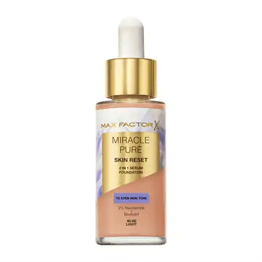 Opdag den revolutionerende MAX FACTOR Miracle Pure Skin Reset 2 In 1 Serum Foundation i nuancen 40-60 Light. Denne luksuriøse foundation er designet specielt til den moderne kvinde, der ønsker perfektion og pleje fra hendes makeup. Indeholder 30 ml af en