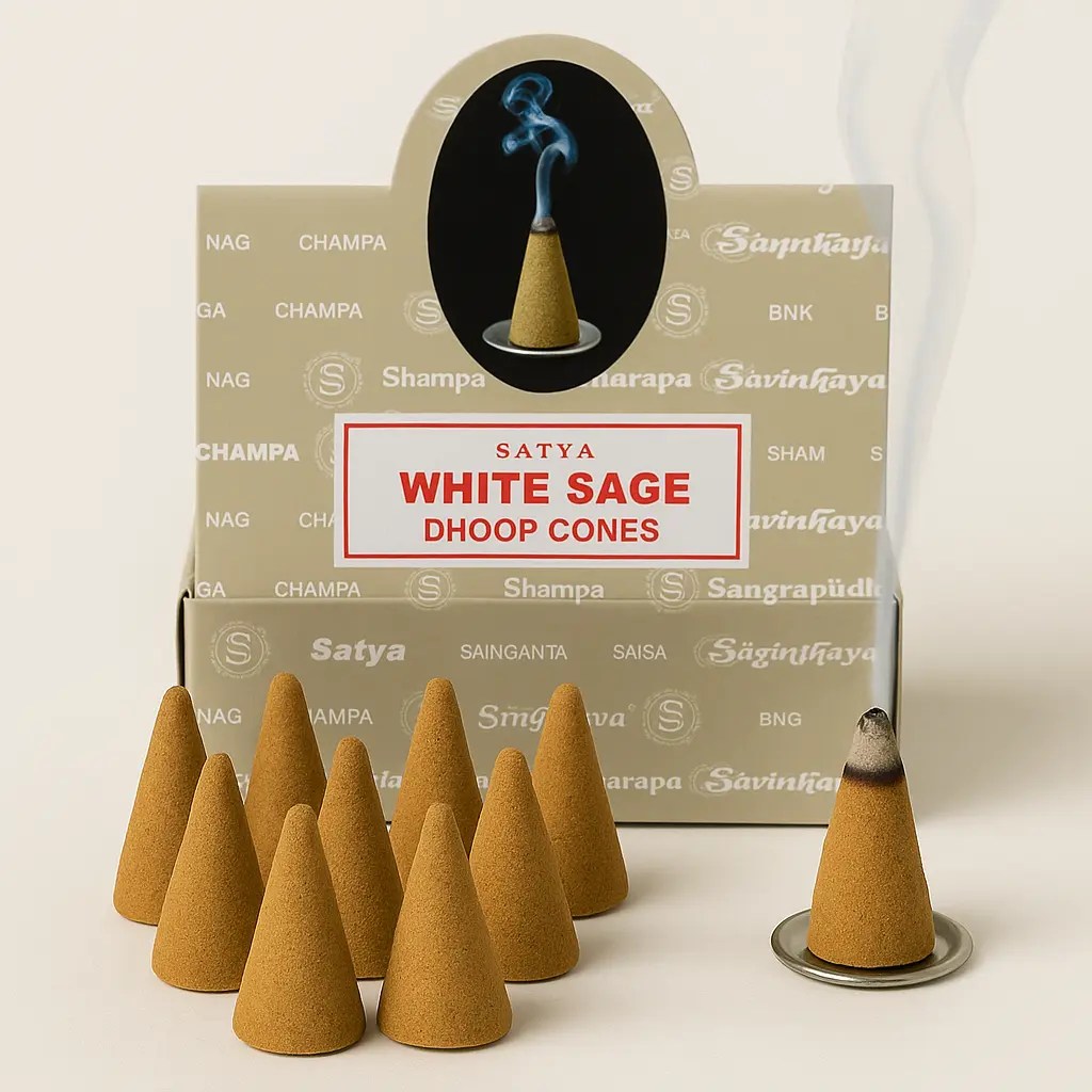 Satya White Sage røgelseskegler rens dit hjem og sind med hvid salvie